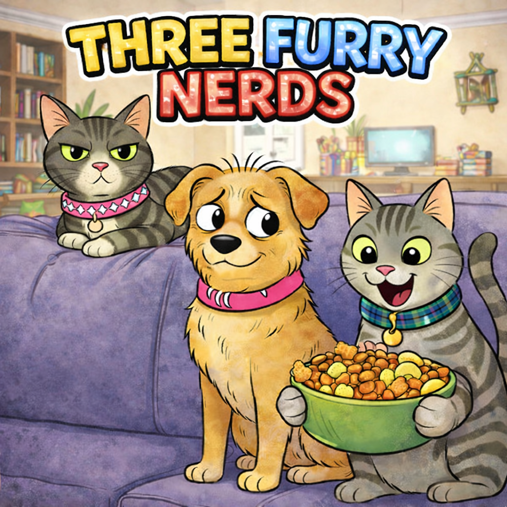 Three Furry Nerds follows the daily chaos of one dog and two cats who treat the house like their own playground. Each story captures their schemes, rivalries, and strange little alliances, where curiosity always wins and trouble is never far behind. Lighthearted and a bit mischievous, these moments turn ordinary days into small adventures worth remembering.